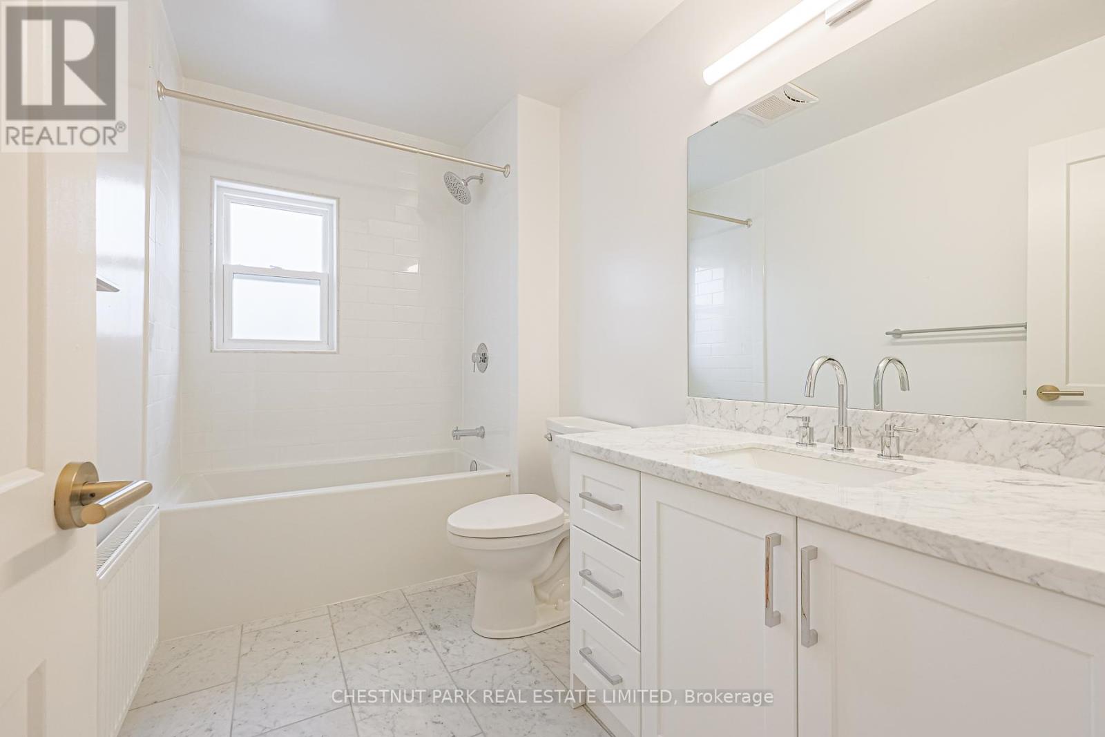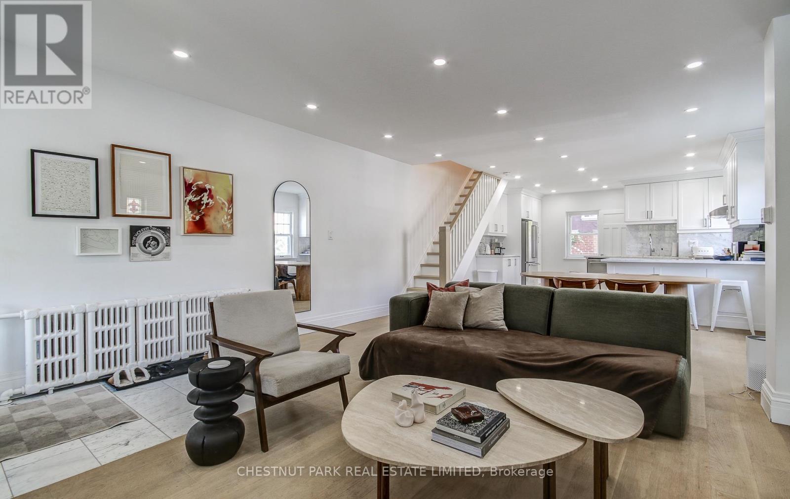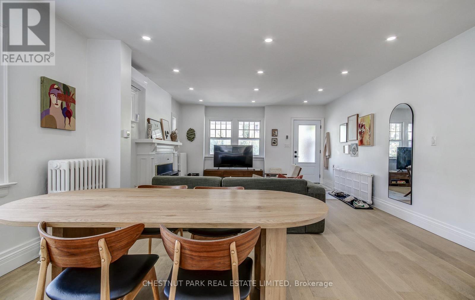 Fantastic opportunity to live in this beautifully renovated home! Open concept and spacious main floor with tons of natural light and white oak hardwood. Kitchen features KitchenAid appliances, Carrara marble, tons of storage, and breakfast bar. Upstairs are 2 bedrooms and a 4-piece bath. Lower level with large laundry room with built-in storage, 4-piece bath, recreation room. Private, fenced backyard, and garage with 1 parking spot. Steps to Donlands TTC, and Danforth shops, restaurants, parks, and schools. Use of 1 parking space within garage. (id:18750)