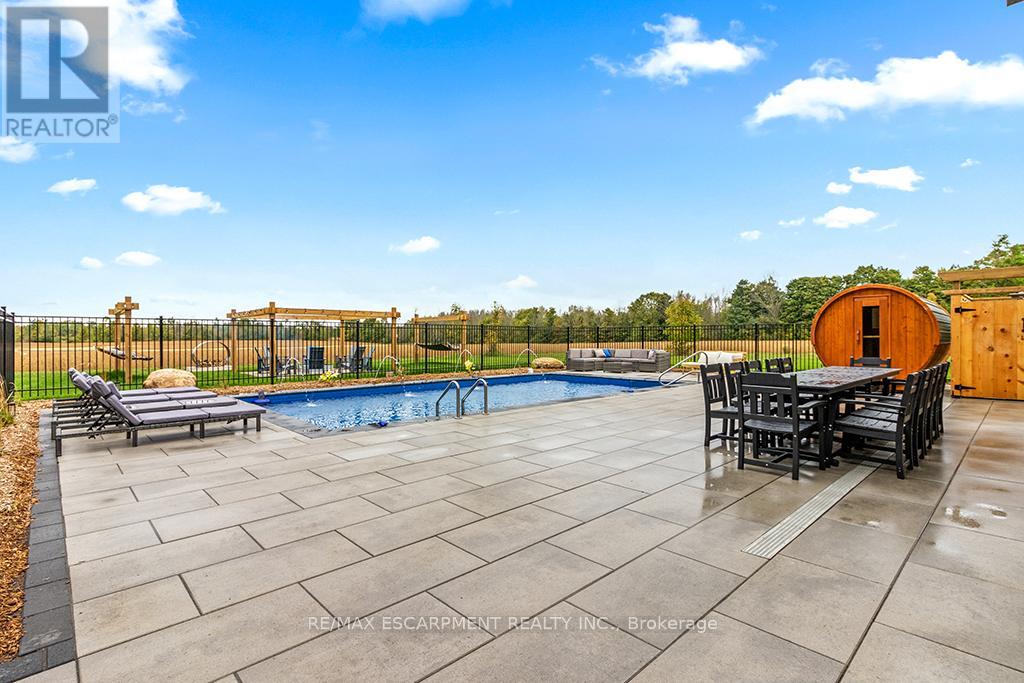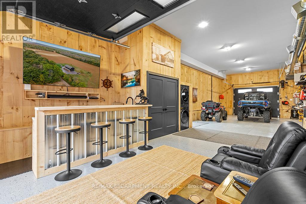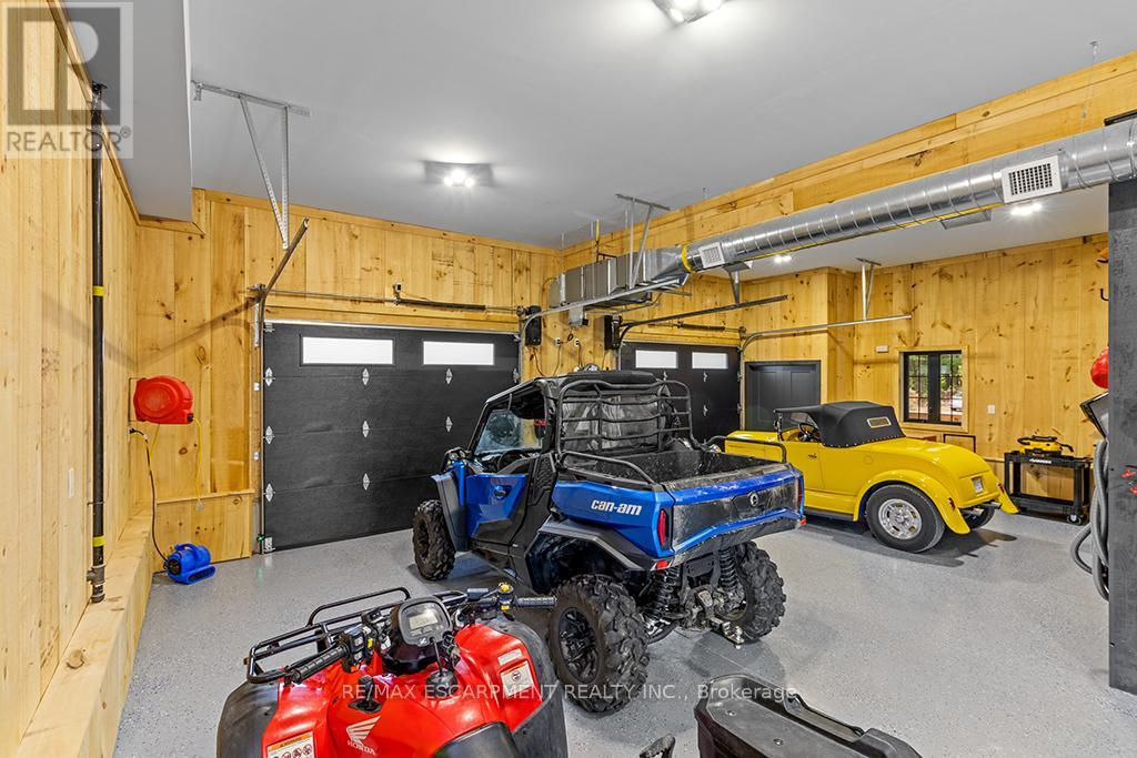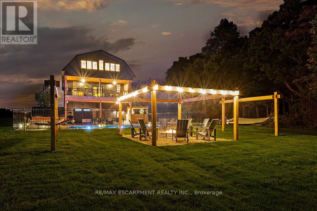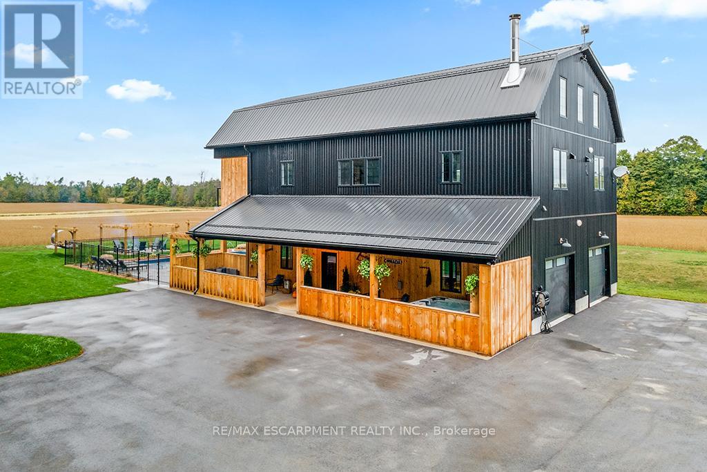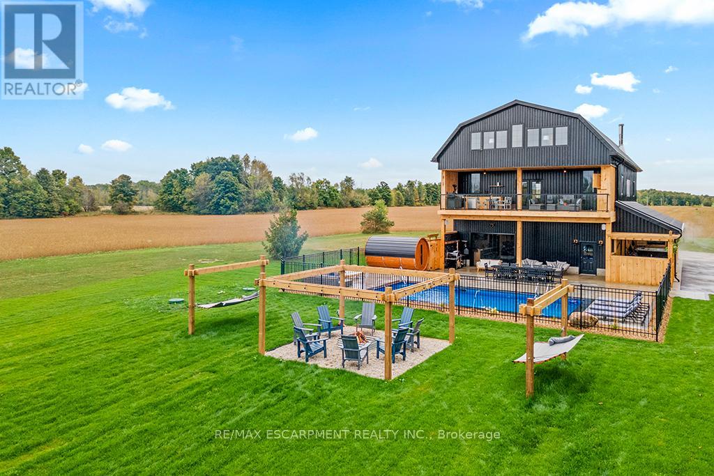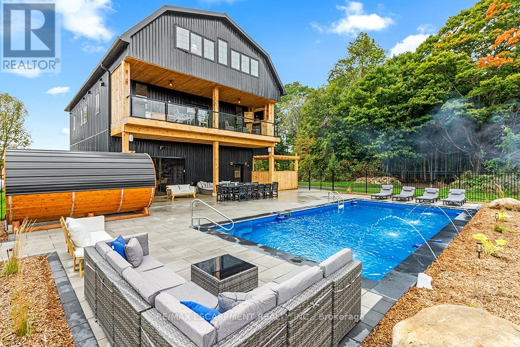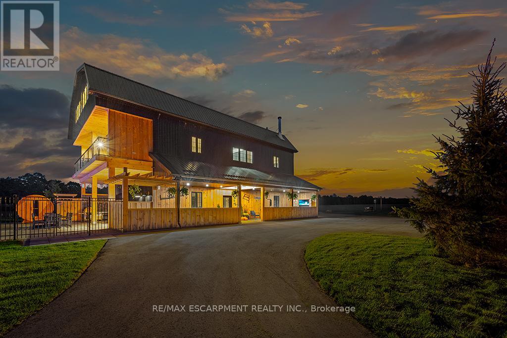 Welcome to 402075 Grey Road 17a spectacular 231-acre estate in Georgian Bluffs where luxury meets country living. This custom-built barndominium blends rustic charm with modern comfort, offering over 4,000 sq ft of finished living space across 4 bedrooms and 4 bathrooms. Designed for accessibility, the home includes a full-size elevator, making all levels easily reachable for everyone. Soaring cathedral ceilings, rich wood finishes, and a stunning wood-burning fireplace set the tone for cozy, elevated living. The open-concept layout is ideal for hosting, with a chef’s kitchen and expansive great room flooded with natural light. Step outside to a true resort-style retreat: a sparkling swimming pool, hot tub, sauna, outdoor shower, and multiple decks where you can unwind and take in the surrounding forest, fields, and spring-fed pond. A detached garage/workshop and extensive trail system make this a dream for nature lovers, hobby farmers, or those seeking a private family compound. Located minutes to Wiarton, Owen Sound, and the shores of Georgian Bay – this is the ultimate rural luxury lifestyle. (id:18750)