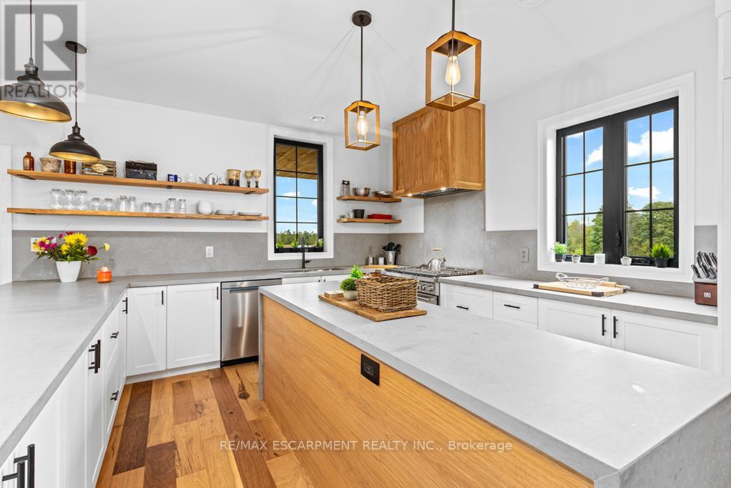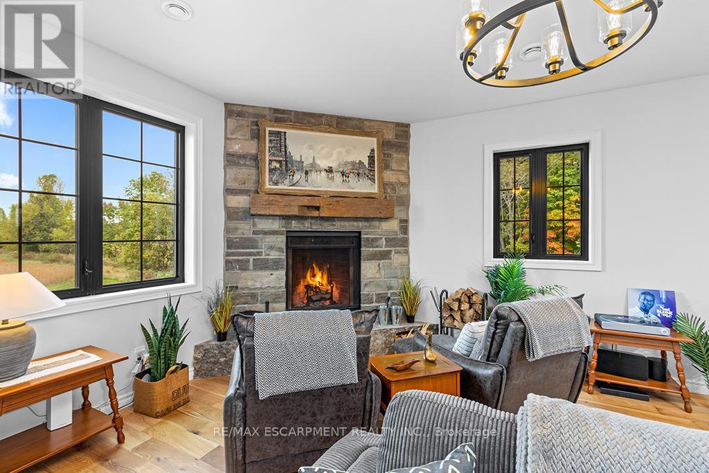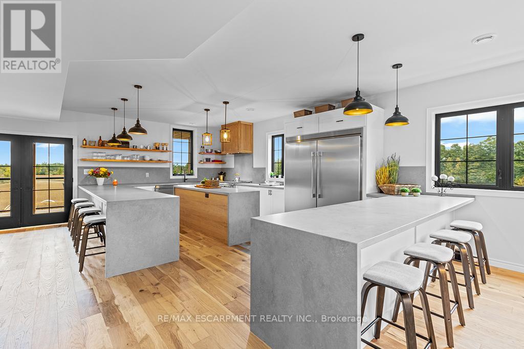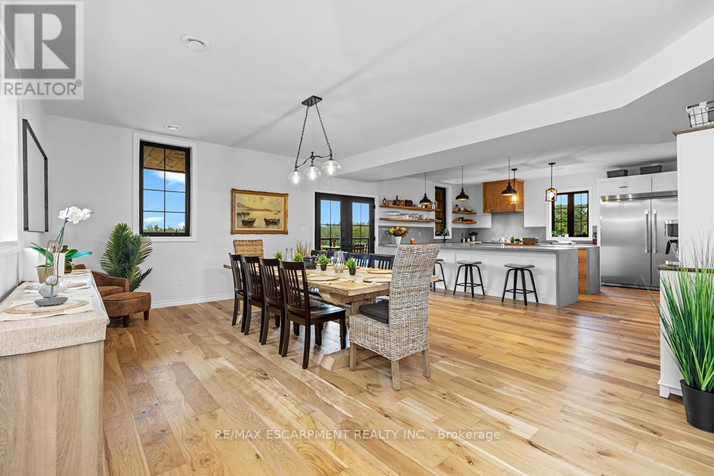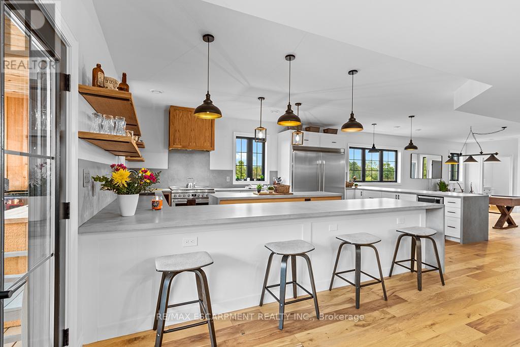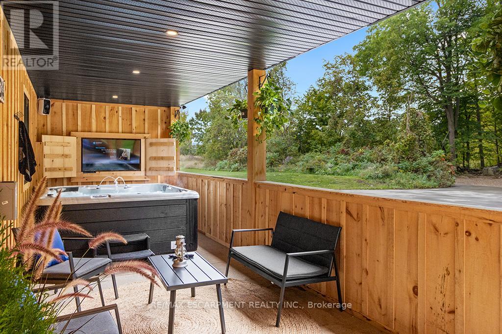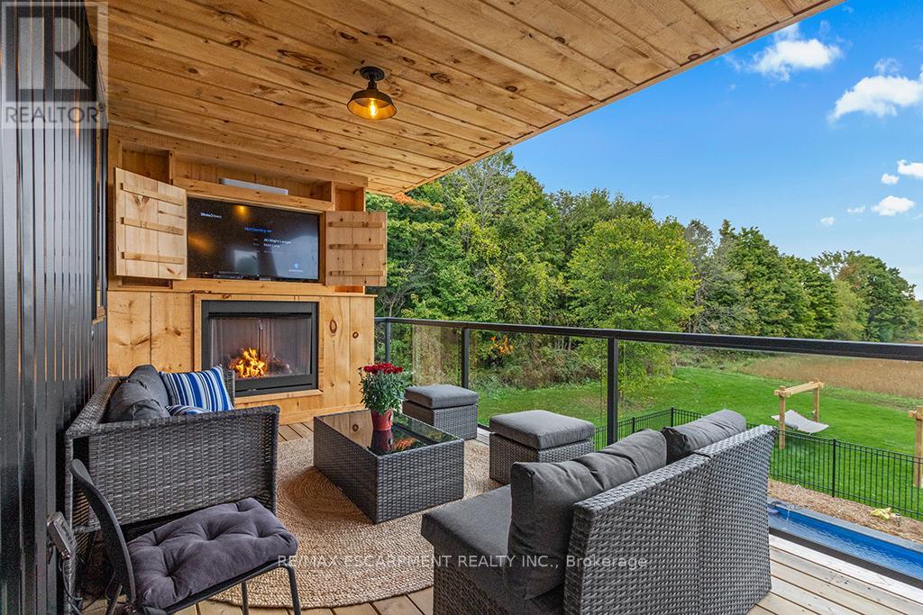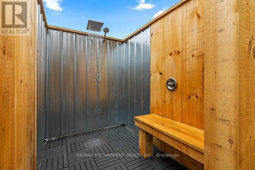 Welcome to 402075 Grey Road 17a spectacular 231-acre estate in Georgian Bluffs where luxury meets country living. This custom-built barndominium blends rustic charm with modern comfort, offering over 4,000 sq ft of finished living space across 4 bedrooms and 4 bathrooms. Designed for accessibility, the home includes a full-size elevator, making all levels easily reachable for everyone. Soaring cathedral ceilings, rich wood finishes, and a stunning wood-burning fireplace set the tone for cozy, elevated living. The open-concept layout is ideal for hosting, with a chef’s kitchen and expansive great room flooded with natural light. Step outside to a true resort-style retreat: a sparkling swimming pool, hot tub, sauna, outdoor shower, and multiple decks where you can unwind and take in the surrounding forest, fields, and spring-fed pond. A detached garage/workshop and extensive trail system make this a dream for nature lovers, hobby farmers, or those seeking a private family compound. Located minutes to Wiarton, Owen Sound, and the shores of Georgian Bay – this is the ultimate rural luxury lifestyle. (id:18750)