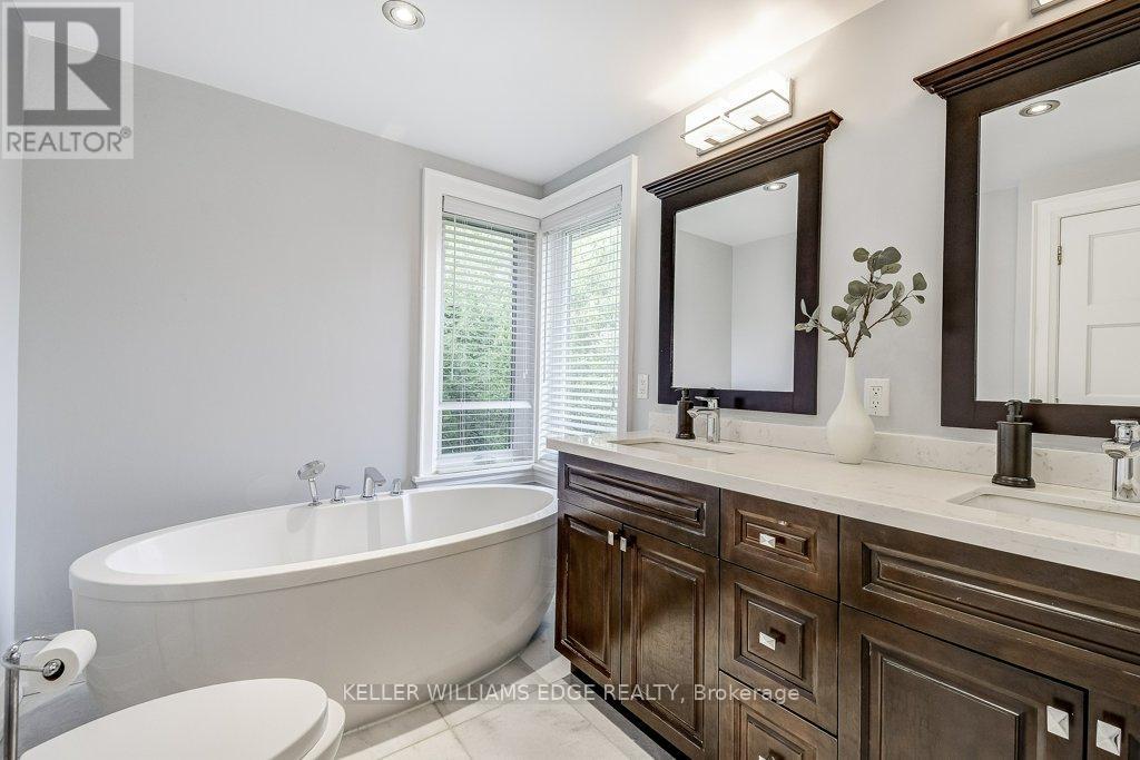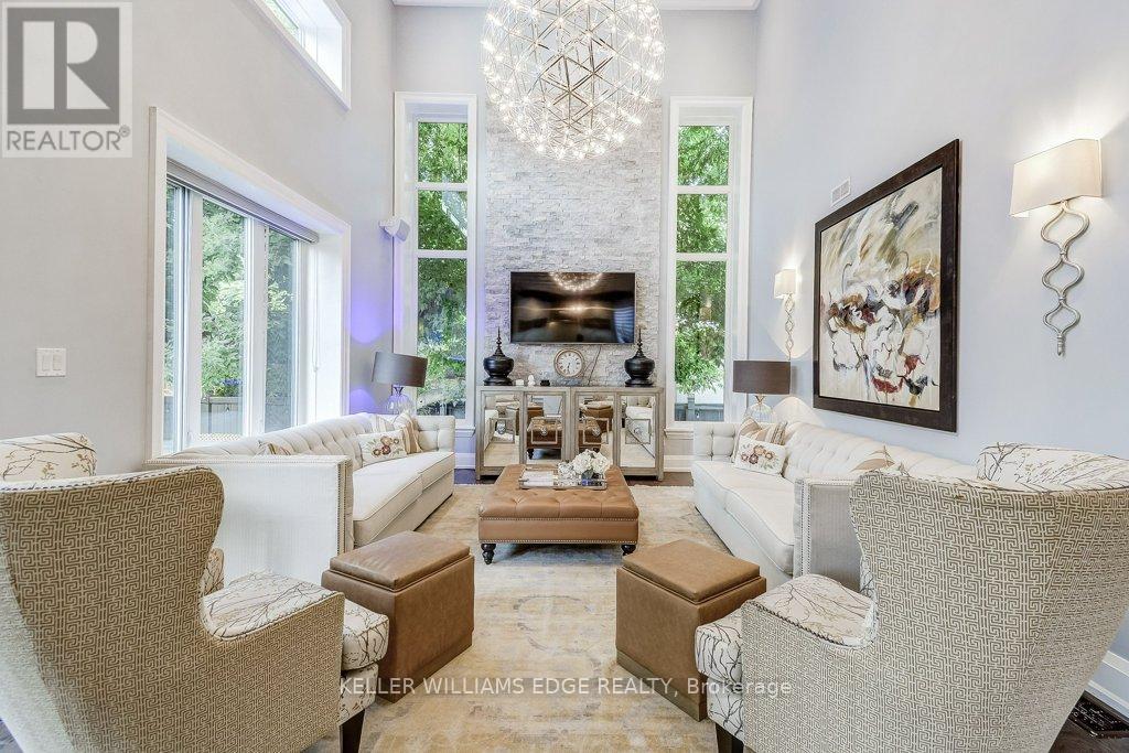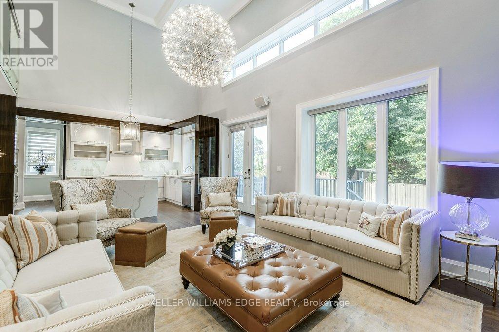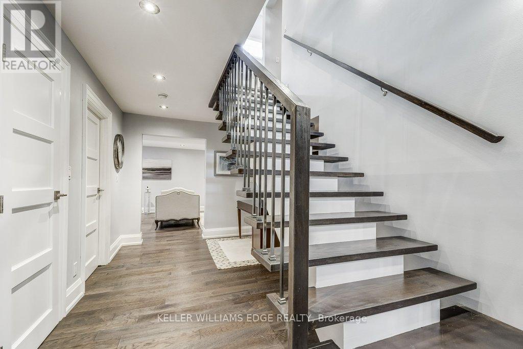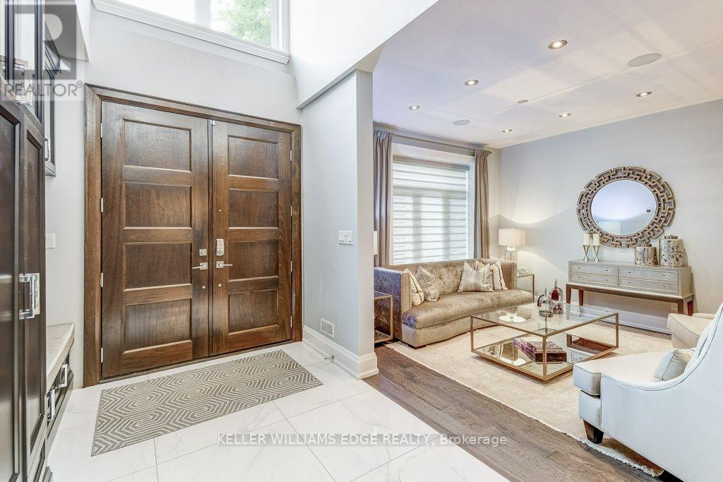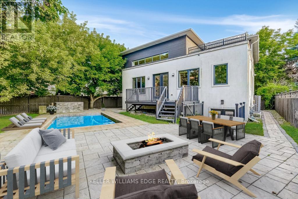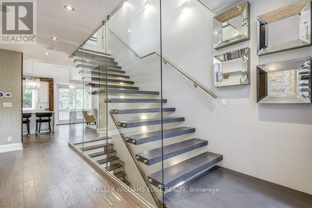 Stunning custom-built home with private backyard and heated pool in South West Oakville. This exceptional residence blends modern elegance with thoughtful design, offering five bedrooms, five bathrooms, and an impressive array of high-end features for the ultimate turn-key luxury living. Step inside to discover an open-concept layout with soaring ceilings. The main floor is designed for convenience and entertaining. The gourmet chefs kitchen boasts sleek finishes, premium appliances & a waterfall island. LED pot lights and statement chandeliers illuminate the space. Every room is wired for data, telecom, and six security-camera zones. A central stereo system covers six zones throughout. Rich, wire-brushed hickory hardwood floors span all three levels. Full-glass floating stairs and a walk-up basement with separate entrance. All bathrooms showcase natural marble tile. Step outside into your own backyard oasis with deck and heated pool; perfect for unwinding or entertaining in serene luxury. Located close to great schools, tennis courts, Coronation Park, Bronte Harbour, GO Transit and the highway – walk or bike to the lake. WELCOME HOME! Furnished available for extra fee. (id:18750)