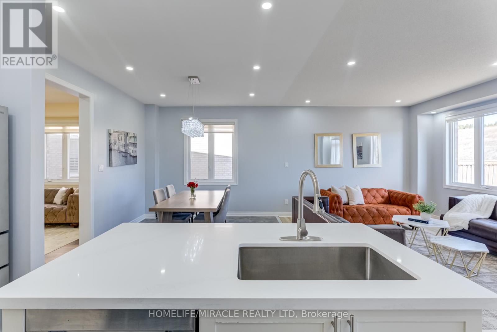 This stunning double-car garage home is located in Alliston’s most prestigious, family-oriented community. Offering over 2,100 sq. ft. of above-grade space and a total of approximately 3,000 sq. ft. of living area, this residence is perfectly designed for comfort and functionality. Situated on a spacious pie-shaped lot, the home features a walkout basement leading to the garage. The fully finished basement includes a full bathroom and boasts high ceilings, making it ideal for entertaining or as a potential rental unit for additional income. Enjoy privacy with no sidewalk and no neighbors behind. The expansive family/great room includes a balcony, perfect for hosting large gatherings or enjoying family entertainment. The newly upgraded kitchen is a chefs dream, featuring quartz countertops, a stylish backsplash, a gas stove, and modern pot lights throughout. Elegant flooring extends across the entire home, enhancing its sophisticated appeal. This exceptional property offers a rare combination of luxury and practicality. (id:18750)