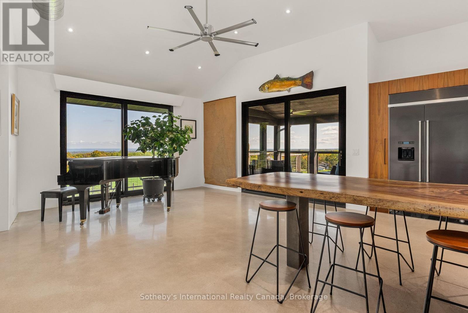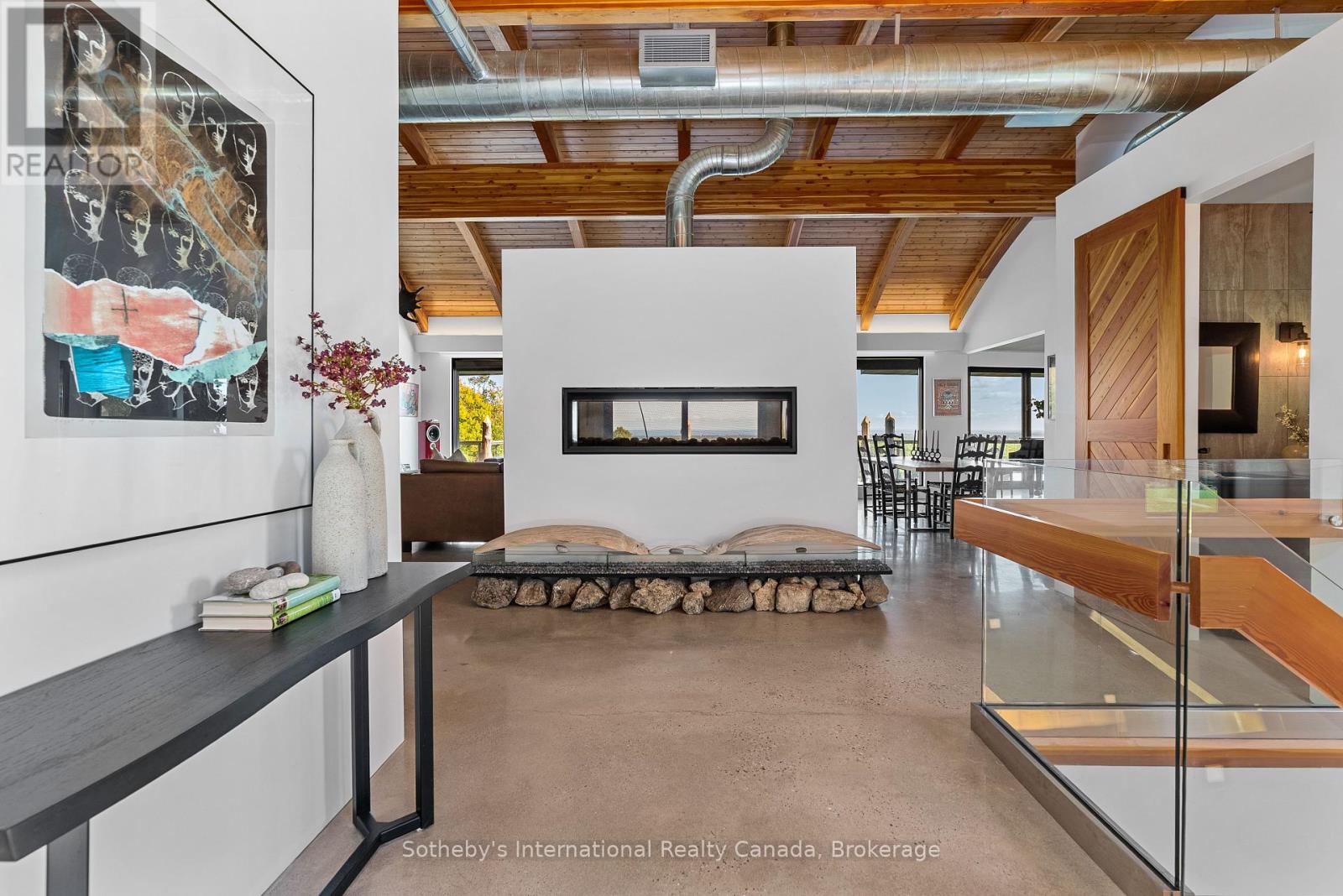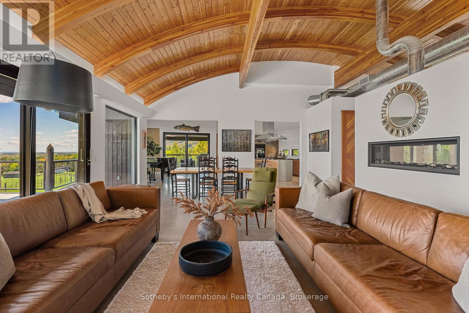 Seasonal Ski Season Lease – Perched on the Niagara Escarpment, this extraordinary estate offers panoramic views stretching across Georgian Bay and Osler Bluff Ski Club, providing a setting of rare beauty and privacy. Silver Creek winds gracefully through the property, framed by scenic trails and protected forest, creating a true four-season retreat. Ideally located, the home is steps from Osler Ski Club, minutes from Castle Glen, and only a short drive to Collingwood, Blue Mountain Resort, and the areas golf clubs, restaurants, and boutiques. The newly built custom residence perfectly blends contemporary design with the subtle feel of an industrial soft loft, combining architectural sophistication with warm elegance. Inside, polished poured concrete floors with radiant in-floor heating set a refined yet comfortable tone. The main level showcases a striking great room anchored by floor-to-ceiling windows that capture the sweeping views. The primary suite serves as a private sanctuary, complete with a spa-inspired 5-piece ensuite. The lower level offers three additional bedrooms two with ensuite baths along with a spacious recreation room ideal for entertaining family and guests after a day on the slopes. A heated two-car garage provides added convenience. Available for the ski season, this exceptional residence offers an unparalleled opportunity to enjoy Southern Georgian Bay’s winter lifestyle defined by natural beauty, recreation, and understated luxury. (id:18750)