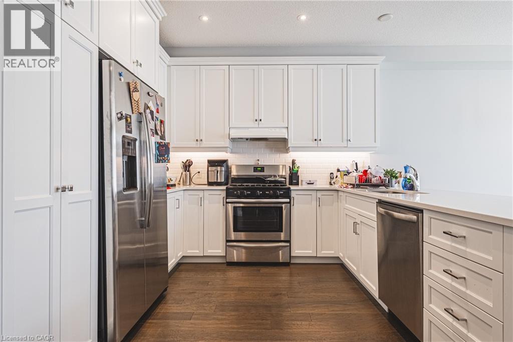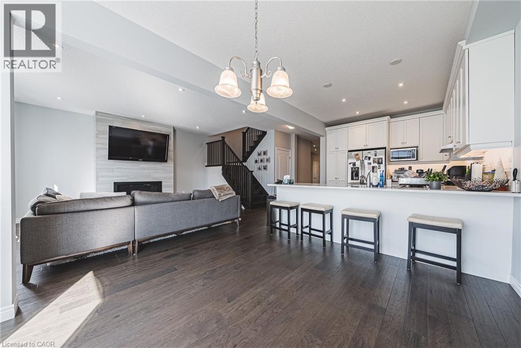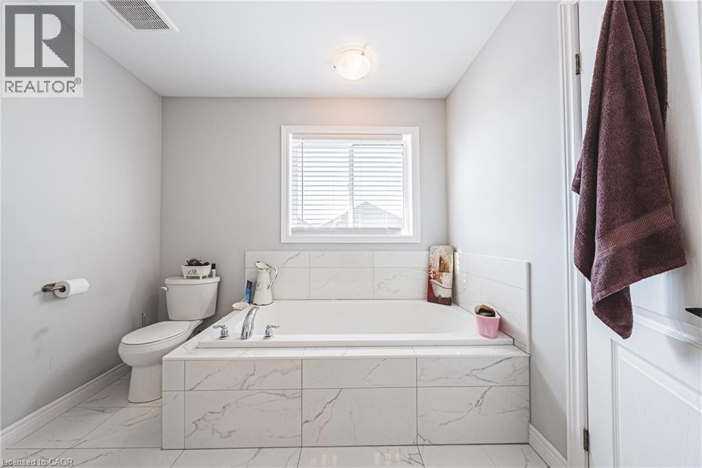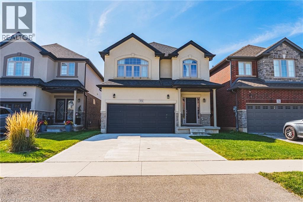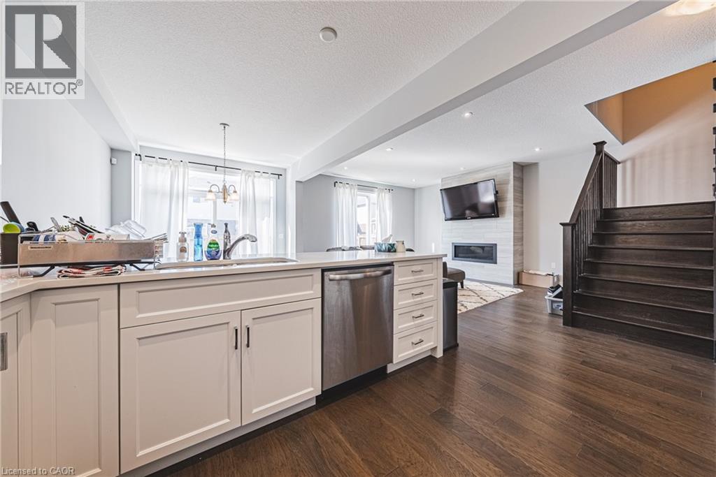 Spacious 2-storey detached home in family-friendly Binbrook. Over 2,400 sq. ft. of carpet-free living with quartz kitchen, stainless steel appliances, dining room, den with French doors, family room with gas fireplace, and inside garage entry. Upstairs features 4 generous bedrooms, 2 full baths, and convenient laundry with washer/dryer. Primary suite includes walk-in closet and ensuite with Roman tub, double vanity, and glass shower. Large windows and modern finishes. (id:18750)