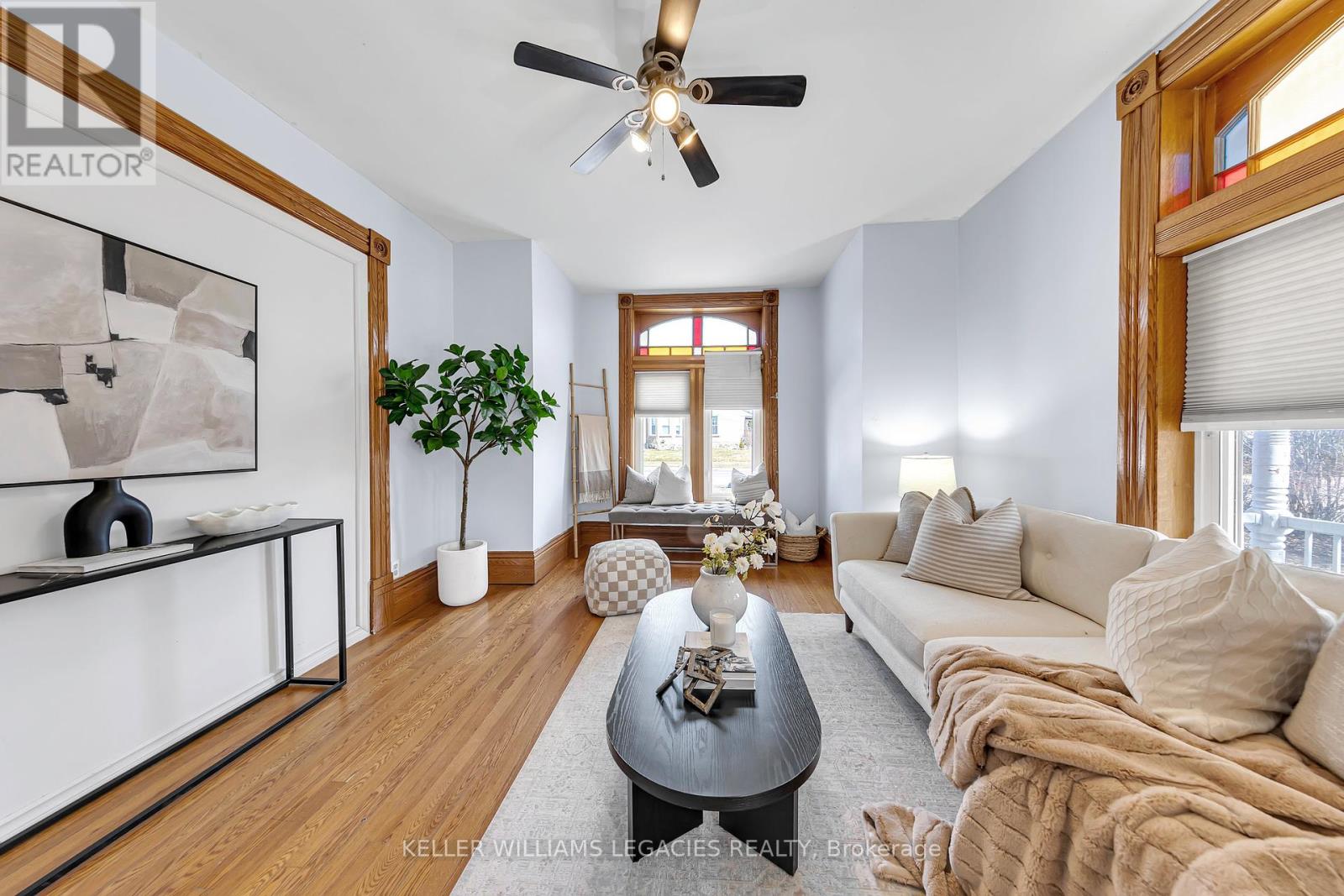 This beautifully maintained 2-storey brick home blends historic character with modern functionality. The main unit offers over 1,500 sq ft of living space, ideal for families, professionals, or students. Featuring 4 generously sized bedrooms (3 upstairs, 1 on the main floor), a large 5-piece bathroom on the second level, plus a convenient 2-piece powder room on the main. Enjoy the warmth of hardwood floors, stained glass windows, copper ceiling tiles, and original gingerbread trim on the covered front veranda. The hickory kitchen with island and walk-out to the backyard deck provides excellent prep and entertaining space, complemented by a formal dining room. Located in a well-connected area just 10 minutes to Trent University and Fleming College, this home is perfect for student housing or families seeking comfort and charm. With 5+ parking spaces, ample storage in the basement, and proximity to transit, shopping, parks, and highway access this is a unique rental opportunity you dont want to miss. Students welcome! (id:18750)